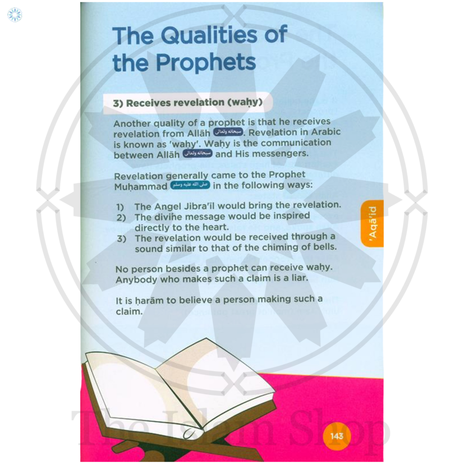 Important topics have been selected from the subjects of Islamic Jurisprudence the life and Sayings of our beloved Messenger Muhammad sallallahu alayhi wa sallam historical anecdotes, essential beliefs, mannerisms and social etiquette, all relevant to the age and needs of the child.