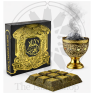 The Bukhoor is usually burned in a traditional incense burner called Mabkhara (it has other names in other courtiers like Majmor), using charcoal of wood or manufactured charcoal discs/briquettes. But many people nowadays use electrical incense burners because they are faster and safer to use. However most still prefer to use the charcoal because it is s traditional, natural and burns Bakhoor better.